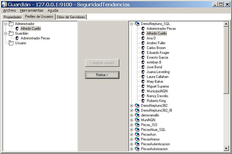 • En Seguridad \ Guardián, asignar los usuarios al perfil “Usuario”