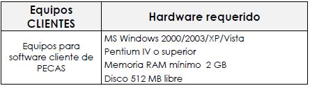 Todos los productos cliente de software de la Suite PECAS para la administración de los servidores de Integrabilidad se pueden instalar en equipos estándar de escritorio o laptops.