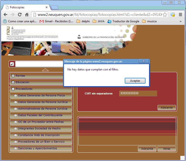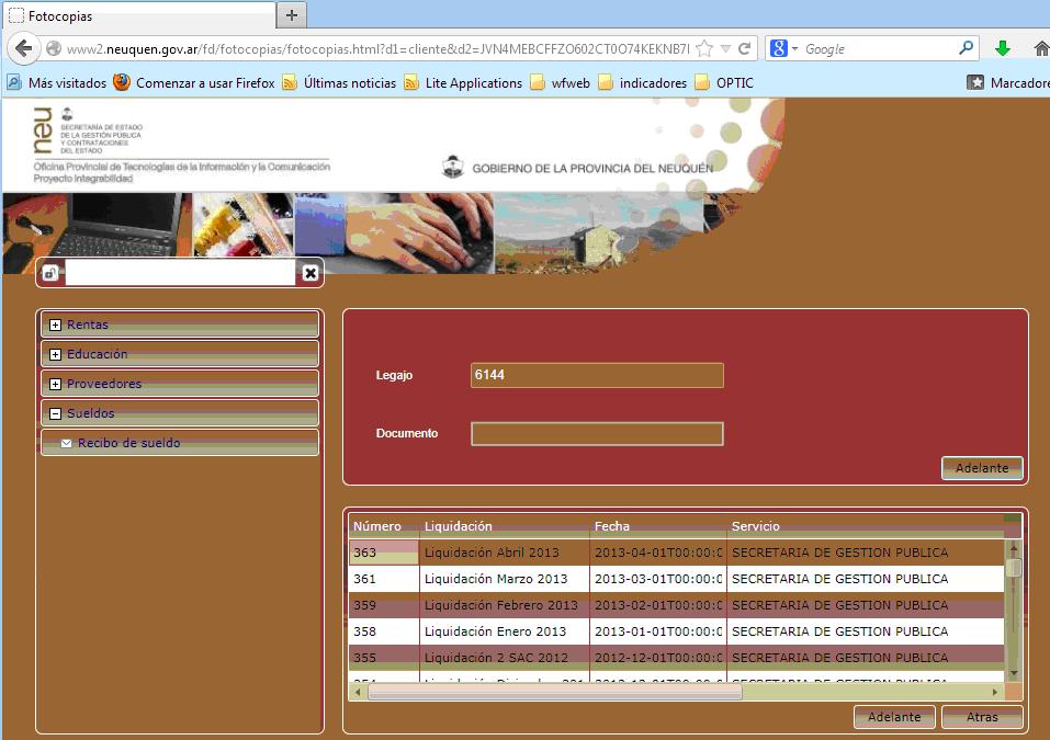 Importante: el navegador de Internet deberá permitir ventanas pop-ups (emergentes) para el sitio http://www2.neuquen.gov.ar, sino no aparecerá en pantalla la e-fotocopia.